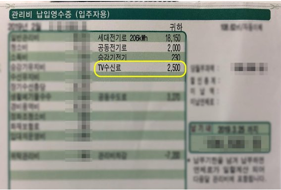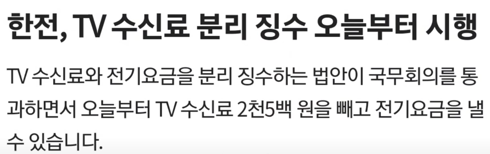 혼란의 중인공은 여기 나와있는이 TV 수신료 2500원 분리징수입니다